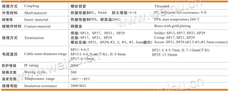 SP21焊接芯件参数表