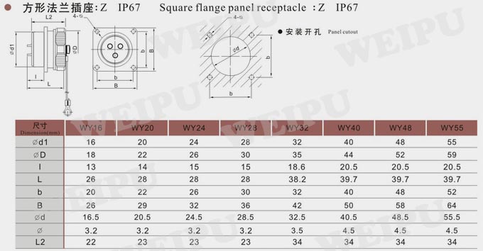 WY系列方形法兰插座Z
