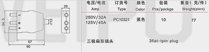 三极扁形插头