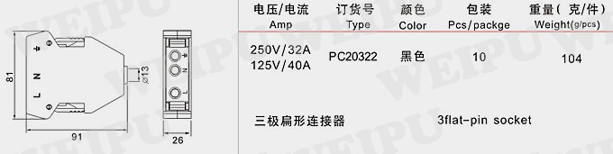 三极扁形连接器